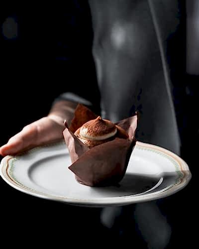 Бисквит с кофейной пропиткой, кофейный ганаш на молочном шоколаде и Pin-Up взбитый ванильный ганаш.